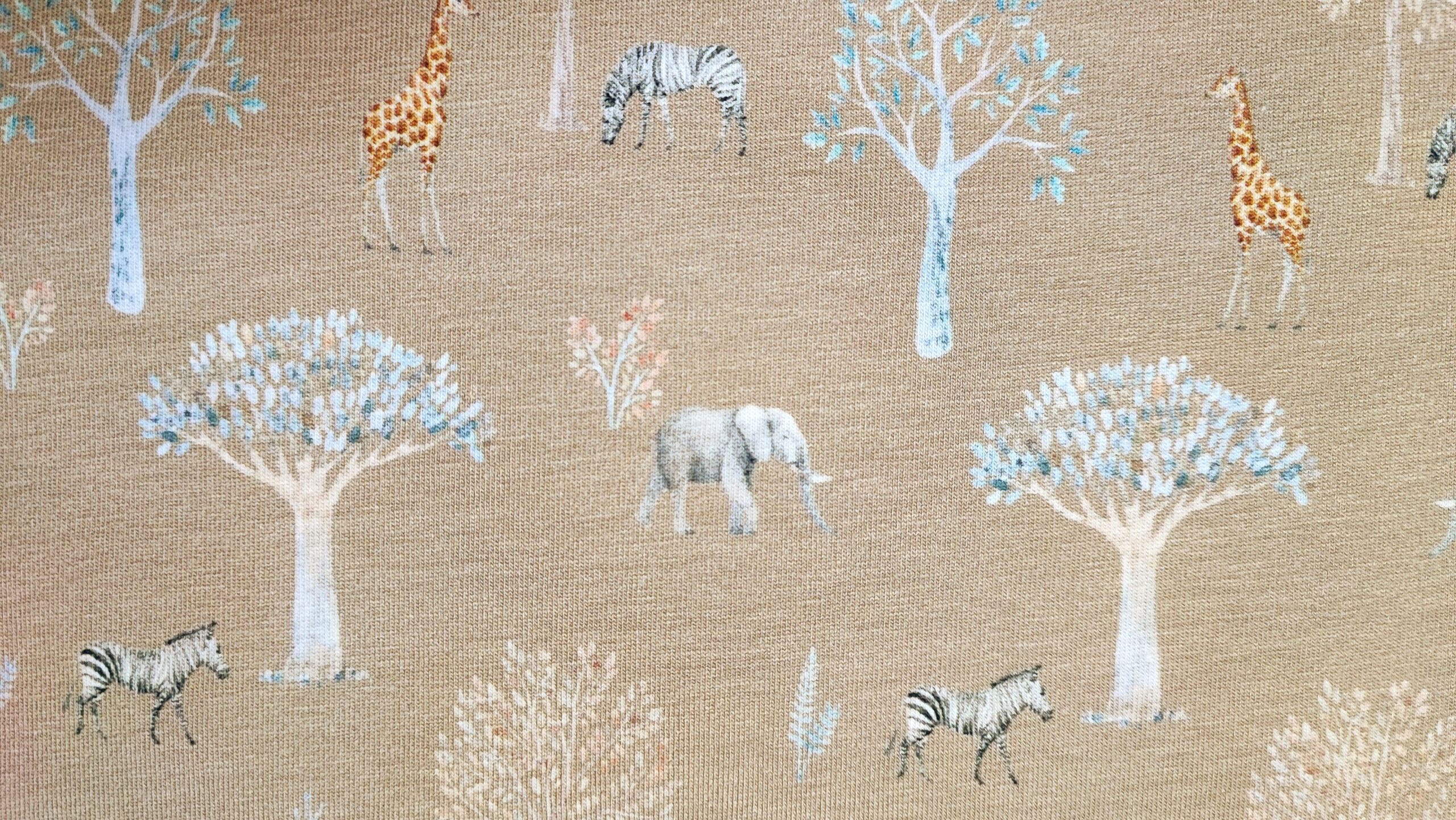 Ökotex minősítésű, digitális nyomtatású, nagyon kellemes, megnyugtató mintájú pamut jersey anyag sokoldalú felhasználásra.