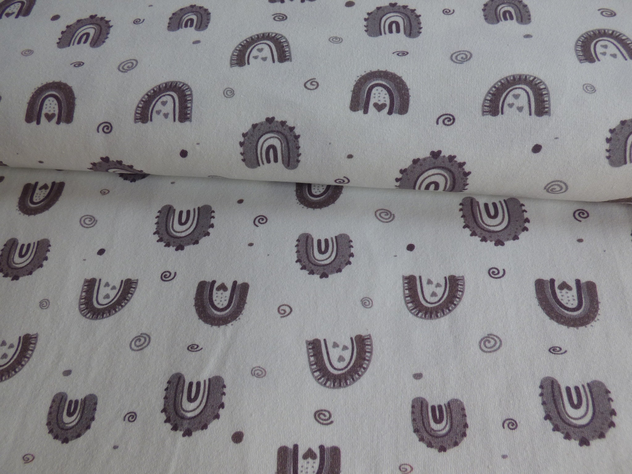 Barna szivárványos pamut jerseyElérhető: 8 méter készleten
